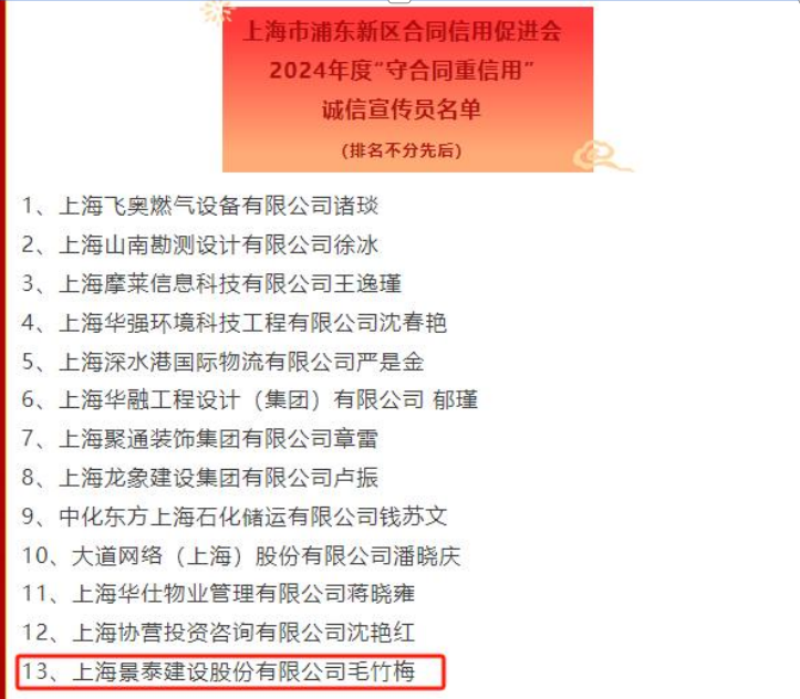 員的評(píng)選活動(dòng)。我司榮獲 2024年度上海市浦東新區(qū)“守合同重信用”標(biāo)桿企業(yè)稱號(hào),以及一位同仁榮獲 2024 年度上海市浦東新區(qū)“守合同重