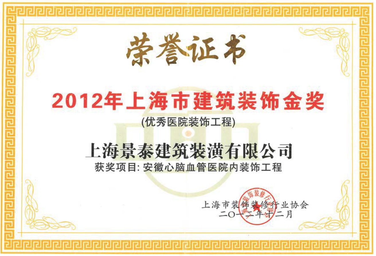 2012年上海市建筑裝飾金獎【優(yōu)秀醫(yī)院裝飾工程】 安徽心腦血管醫(yī)院內(nèi)裝飾工程