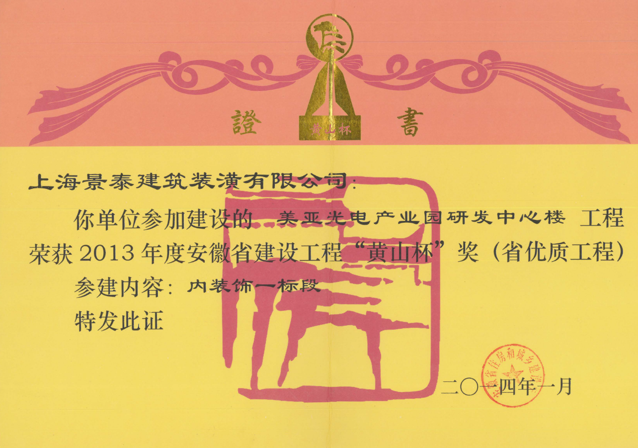2013年度安徽省建設(shè)工程“黃山杯”獎